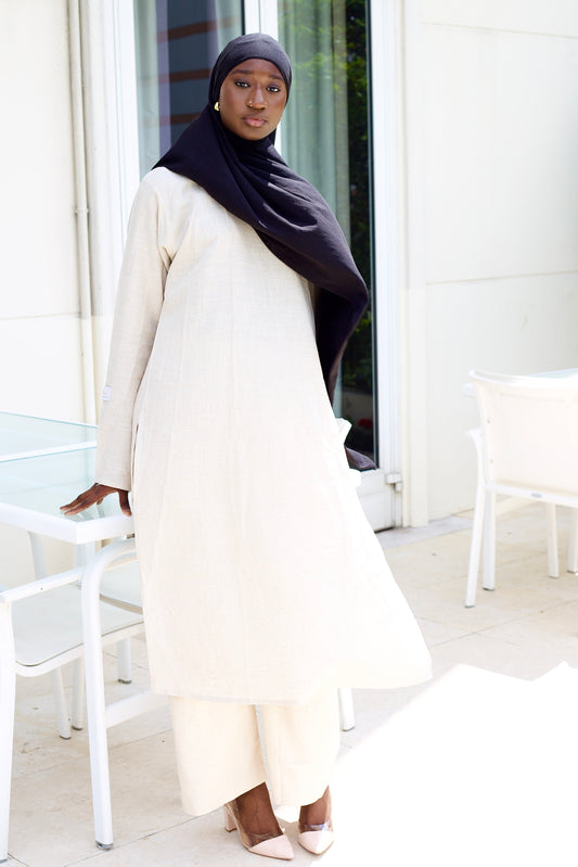 La raison pour laquelle j'ai décidé de lancer NISSA MODESTIE est que je suis fatiguée d'acheter des vêtements de mauvaise qualité et identiques partout.